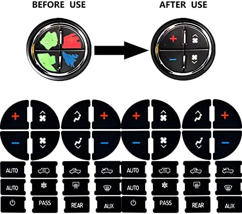 【High Quality Material】Rear Radio made from Heavy duty premium automotive grade construction,AC dash button sticker repair kit are made from professional commercial grade plastic matte vinyl with blacked filmed adhesive, The sticker can protect your dash button from sun damage and mask the fading paint of your button.,durability,makes sure the products stay in place for a long time.