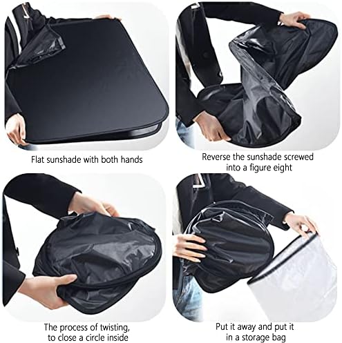 【FOLDABLE STORAGE】: The front windshield of the car sunshade is designed with “memory steel ring” which can be twisted and folded freely, when you want to store it, just fold it up, twist it along the steel ring into an “8” shape and put it into the storage bag that comes with the product, it can be easily placed in the car door or passenger compartment.