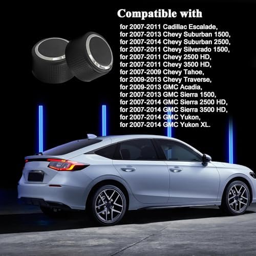 [Compatibility] : These car radio knobs fit for Buick Enclave 2009-2013; fit for Cadillac Escalade 2007-2014, for Escalade EXT 2007-2012; fit for GMC Acadia 2009-2013, for Sierra 1500 2007-2013, for Yukon 2007-2014; fit for Chevy for Avalanche 2007-2011, for Silverado 1500 2007-2013, for Tahoe 2007-2014, for Traverse 2009-2013