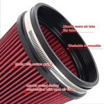 Engineered Power: 6-Inch cone air filter is designed to cold air intake, as well as improve engine sport performance