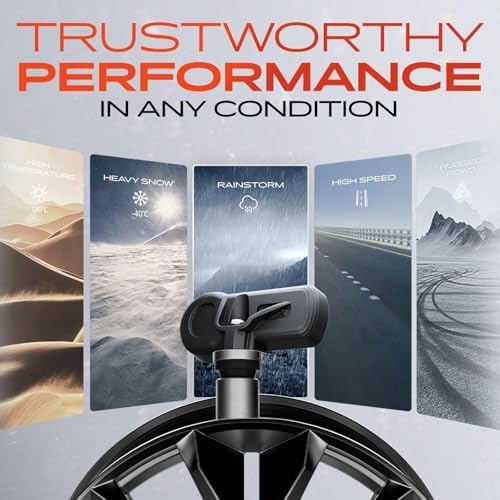 [Premium Solution]: Real-time and accurate monitoring of tire pressure, equipped with a high-precision chip to ensure timely and accurate data transmission, each TPMS is tested in-house according to strict SAE J2657 standards. Combined with long-lasting CR2050 battery and upgraded aluminum valve (compatible with OE rubber valves), our product provides an ultra-long lifespan, adapts to extreme environments from -40℃ to 120℃, and delivers stable and reliable performance during every ride. You can always stay informed about your tire conditions during every drive, enhancing driving safety. We provide a 2-year guarantee for our products to ensure best solution to our customers.