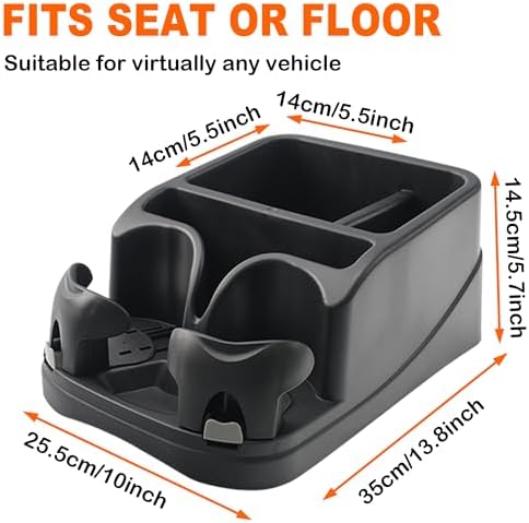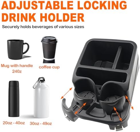 [Adjustable Locking Drink Holders] Equipped with two adjustable and locking cup holders, this automotive center console securely holds beverages of various sizes, from small coffee cups to large water bottles, preventing spills and keeping drinks within reach.