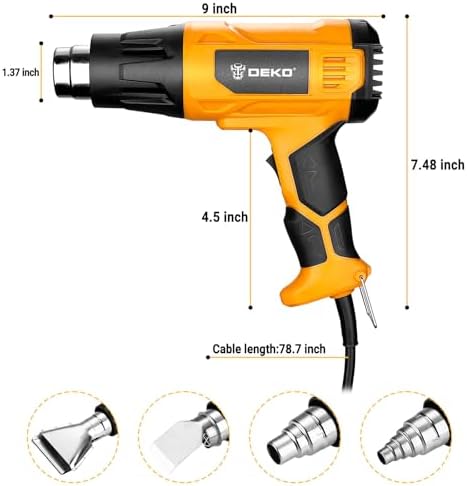 🏆【Convenient and portable】 The DEKOPRO Heat Gun comes with a cassette and portable hooks, making it easy to transport and store. The 78.7-inch lead length allows for flexible movement while working.
