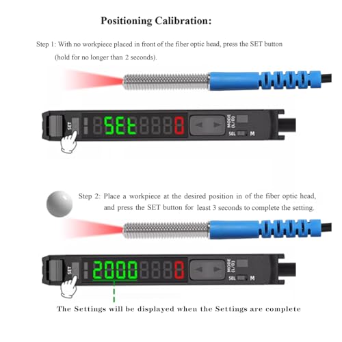 Step 2: Place a workpiece in front of the fiber optic and press the SET button again (hold for no longer than 2 seconds).