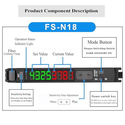 【Scope of application】Fibre optic sensors are suitable for use in a wide range of industries including automotive, liquid crystal, food and pharmaceutical packaging, smartphones and electronics, Position counting ,distinguish colors ,and detect positive negative products,lithium ion batteries and solar cells. (Recommended to use with the store’s optical fiber)