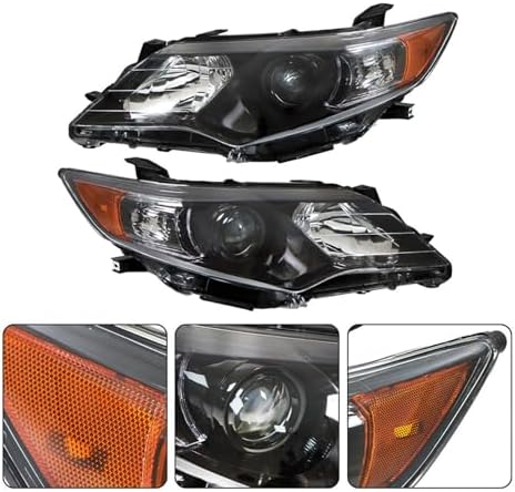 Headlights Assembly Replacement for Toyota Camry SE Style 2012-2014 Driver and Passenger Side Projector ABS Plastic Housing Polycarbonate Lens