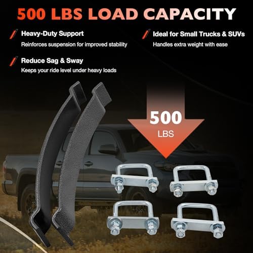 Heavy Duty Load Support (Up to 500 lbs) – Increases rear suspension load capacity by up to 500 lbs, perfect for towing, hauling, or adding weight to your vehicle without replacing the entire spring pack.