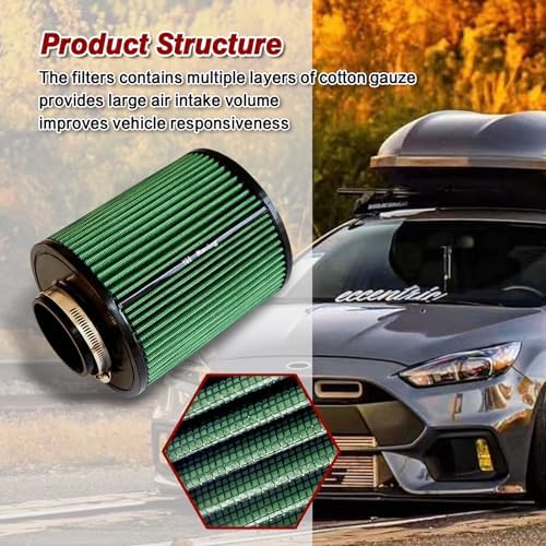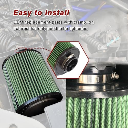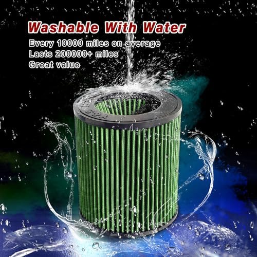 High quality & cheaper reusable: The filter is made of advanced 3-layer material. Coated with special aluminium mesh, washable, clean with water (no oil) and reusable. Dry air filter, no need to spray oil, does not affect the air flow sensor.Flows more air without sacrificing filtration, can continue to use 40,000 to 50,000 miles, flush with water, natural dry can continue to use, life span of more than 200,000 miles.