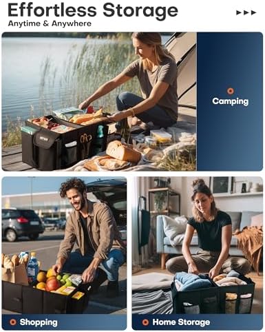 DURABLE MATERIALS: Made of sturdy Oxford cloth with reinforced stitching on high-wear areas, this car organizer for trunk is built to last through heavy use. The thickened base panel and handles enable this product to bear over 60lb capacity.