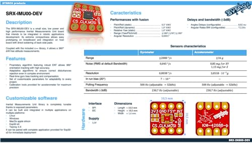 ✏️SYSROX IMU 6 DOF/6 AXES HIGH-PERFORMANCE including a 3-axis accelerometer and a 3-axis gyroscope with a sampling frequency of up to 32kHz, perfect for use as an inclinometer…