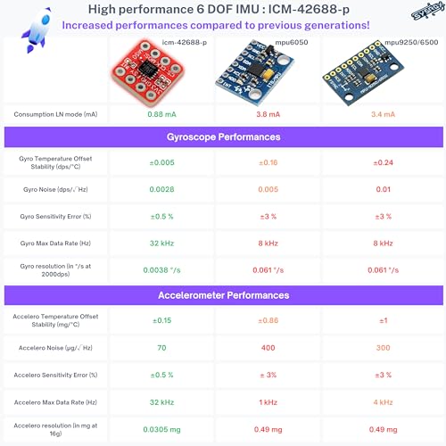 ✏️NEW GENERATION SENSOR (ICM42688p) HIGH PRECISION replacing older, less efficient MPU6050-MPU6500-ADXL345. Superior performance in terms of drift, resolution, noise levels…