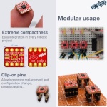 ✏️MINIATURE DEVELOPMENT BOARD 1cm x 1cm with 2.54mm pin spacing for easy prototyping of robotic applications, drones… Clipable prototyping pins allowing for use on a breadboard or non-permanent mounting on a support board.