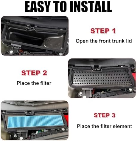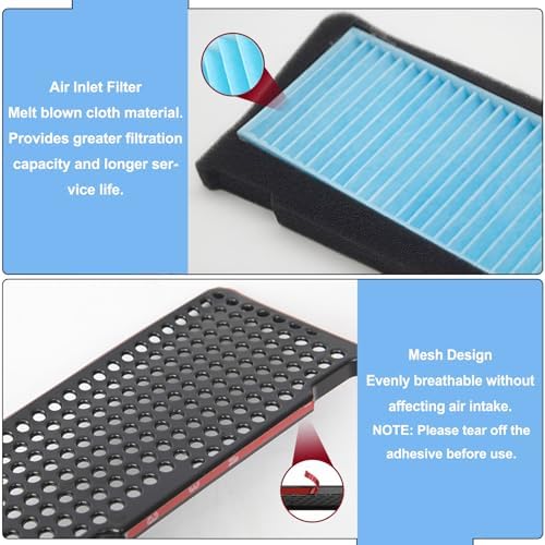 Easy to install: Just remove the original cover of the air intake grille to install the filter and the air intake filter. No need for any other tools. Compatible for Tesla Model 3 air intake accessories vent cover. Note: Please remove adhesive before use.