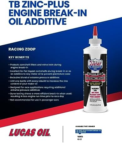 Lucas Oil 10063 Engine Break In Oil Additive w/ TB Zinc Plus – 16 Ounce