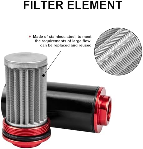 Quality Material: Our 3/8 inline fuel filter is made of high-strength aluminum alloy material, which is forged and processed, which is lightweight, corrosion-resistant and resistant. The inline fuel pump element is made of stainless-steel filter, resistant and rust-proof. The fuel filter 1/2 x 28 screen adopts a folding method, which can expand the filter area to play the better effect of filtering de gasoline