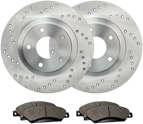 Complete Kit, Ready for Installation: This brake kit includes front cross-drilled rotors and one set of ceramic pads, ready to install with no modifications required.