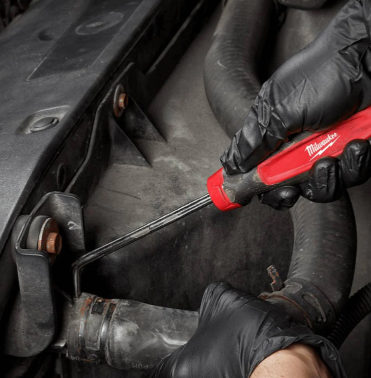The 4pc Hose & pick set feature an all-metal core for up to more durability. Each pick has a specific angle for different applications whilst the reinforced tip resists bending when loosening stubborn hoses. The flat pick provides puncture protection and reduces damage to hoses. Our Comfort grip handles gives the user increased tool control and comfort. This set features a hook, 90°, 45°, and flat hose pick along with a durable long-term storage tray for easy access and organisation. These chrome-plated picks provide superior rust protection.