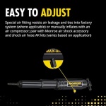 EASY TO ADJUST — Special air fitting avoids air leakage and ties into factory system (where applicable) or manually inflates with an air compressor; pair with Monroe air shock accessory and shock air hose AK kits (varies by application)