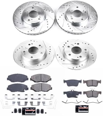 Z23 Front & Rear Brake Pad and Rotor Kit Includes: 2x Front Drilled & Slotted Brake Rotors + 2x Rear Drilled & Slotted Brake Rotors + 1x Front Carbon-Fiber Ceramic Brake Pad Set w/ Hardware + 1x Rear Carbon-Fiber Ceramic Brake Pad Set w/ Hardware