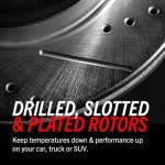 Drilled & slotted brake rotors provide maximum brake cooling and feature Silver Zinc Dichromate plating that protects against rust and corrosion