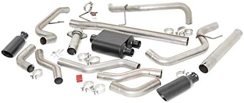 Give your truck an aggressive, throaty growl and killer good looks with Rough Country’s Dual Cat-Back Exhaust System. These durable exhaust systems are fine tuned to improve air flow and deliver and the perfect aftermarket exhaust note that will put a smile on your face every time you hit the gas. Rough Country Dual Cat-Back Exhaust System has dual side exit pipes. Each kit features a set of high-temp resistant, dual-wall 304 black stainless tips with RC logo for an improved, aggressive look. Upgrading your exhaust note has never been easier! Each kit conveniently installs onto the factory hangers and features stainless clamps for easy assembly with no welding required! Transform your truck today and let your engine ROAR with the best exhaust kit money can buy!