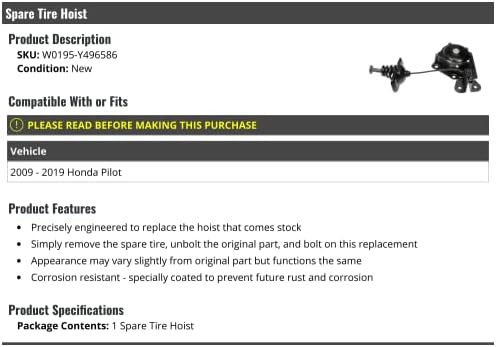 Spare Tire Wheel Hoist Winch – Compatible with 2009-2019 Honda Pilot