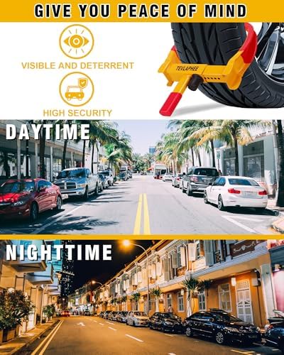 【WORKS WITH MOST VEHICLE】:Universal wheel locks can be adjusted to fit 7 to 11 inch width wheel for cars,campers, trucks, trailers,motorcycles, boats,ATV’s, RV’s etc.Please make sure that the car wheel lock size fits your wheel width