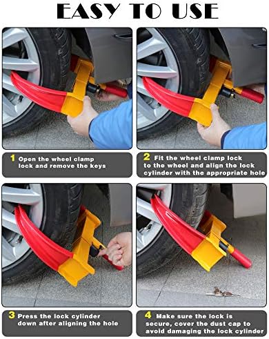 【HIGHLY VISIBLE AND SAFE】:The bright yellow and red color of car boot is a fine choice for maximum visibility in both day and night.The trailer wheel lock greatly reduces the possibility of being targeted by thieves and protects your car security effectively!