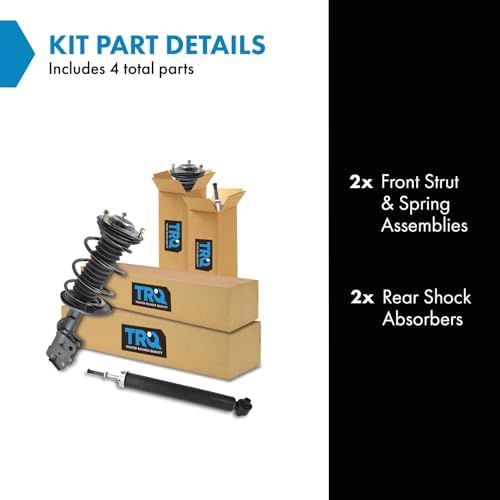 TRQ fully loaded shocks and struts are manufactured using premium raw materials and calibrated to restore original ride comfort. TRQ shocks are fully loaded featuring a pre-loaded bearing plate, upper and lower spring isolator, upper spring seat, coil spring, boot kit, and premium strut. TRQ recommends replacing your shocks or struts in pairs to ensure even wear of components and improved ride comfort. All products are fit and road-tested in our Massachusetts R&D facility to ensure we deliver on our promise of Trusted Reliable Quality.