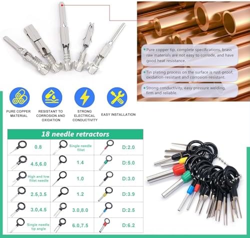 Products include 21 kinds of 355 male and female terminal pins and 400 waterproof plugs.18pin needle extractor