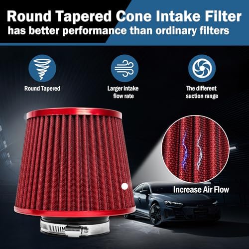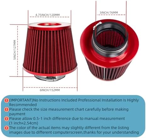 【Size】This high-flow cone air filter features a 3-inch/76mm inlet. For detailed dimensions, please refer to the provided picture.