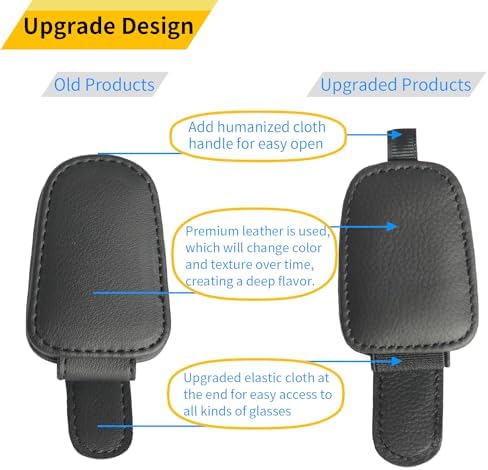 Full Leather Wrap: The car visor sunglasses holder is made of high-quality leather, featuring a soft texture that fully envelops the clip, ensuring your visor and glasses remain undamaged.